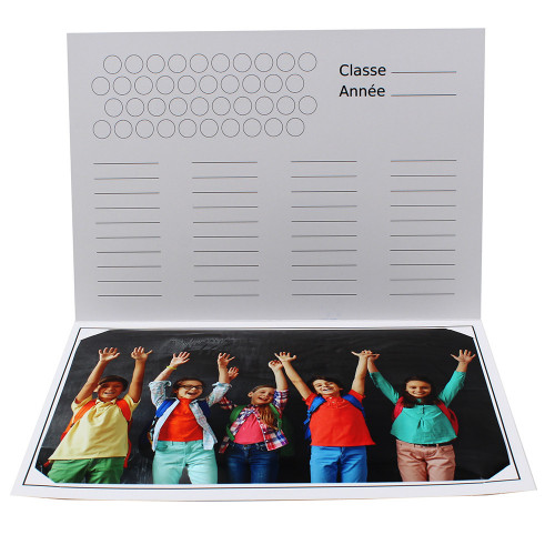 Cartonnage photo scolaire pour présenter les photos de groupe: scolaires, sportives, événementielles... Pochettes scolaires illustrées ou neutres pour des images de taille 18x24, 18x25, 18x27, 20x30 et A4(21x29,7).