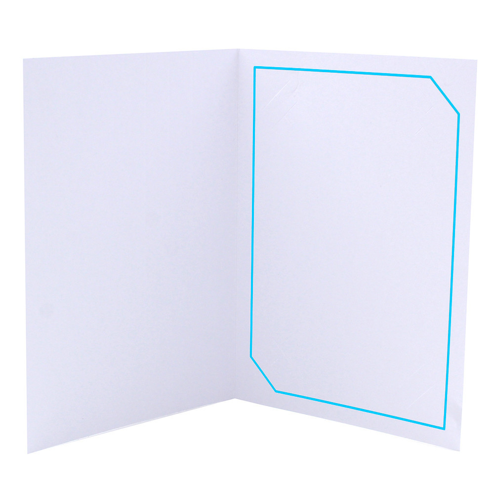 Le cartonnage photo Hayange de la collection CashPhoto est conçu pour offrir une présentation soignée et professionnelle des tirages. Son fond blanc épuré associé à un liseré bleu clair graphique crée un encadrement discret qui attire naturellement l’attention sur la photographie.
