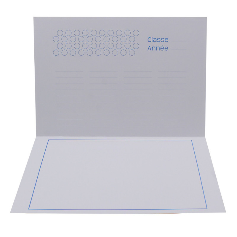 Cartonnage scolaire de la série "Monumental". Vous pourrez insérer une photo dans le format 18x24 cm dans la chemise photo scolaire.